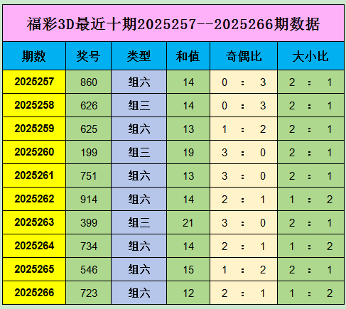 福彩3D上期开出奖号为723,奖号为组六形态,和值为12,奇偶比为2 : 1,大小比为1 : 2。