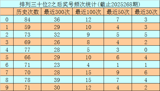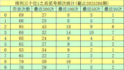 第二位杀号:第二位上期开出奖号为2,该位历史上奖号2开出了719次,最近100次第二位奖号出现2后,下期落号0-9次数从高到低分别为:号码7、8→15次,0、9→12次,1、5→10次,2→9次,3→8次,4→5次,6→4次。