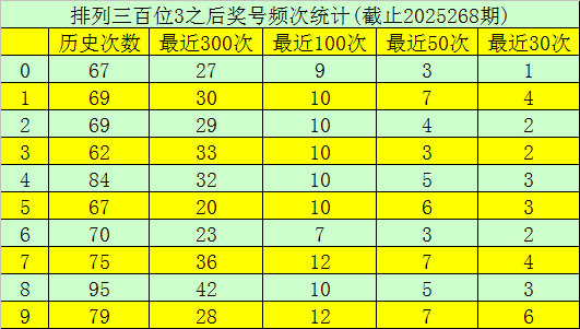 第一位杀号:上期第一位奖号为3,第一位奖号3历史上出现738次,前100次该位开出奖号3之后,下期号码0-9出现次数从高到底分别为:号码7、9→12次,1、2、3、4、5、8→10次,0→9次,6→7次。