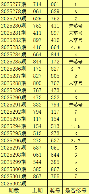 一、上期回顾:福彩3D第2025301期开出奖号755。